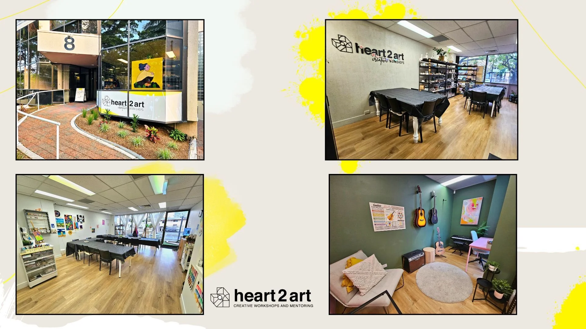 Our creative space is located at Suite B / 8 Short Street, Southport. Our warm and inviting Studio is equipped with all the tools and supplies you need to unleash your creativity.